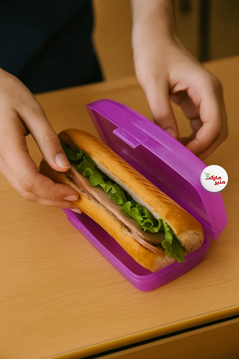 فرم باریک و سبک، جاگذاری در کیف را آسان میکند. این نمونهها برای ساندویچهای خانگی، اسنک یا میوهی برشخورده طراحی میشوند و با ابعاد استاندارد، روی همچیدن در یخچال را ممکن میسازند.