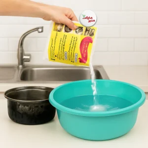 - برای شستشوی ظروف: ظرف را به مدت ۱۵ دقیقه در محلول قرار دهید.